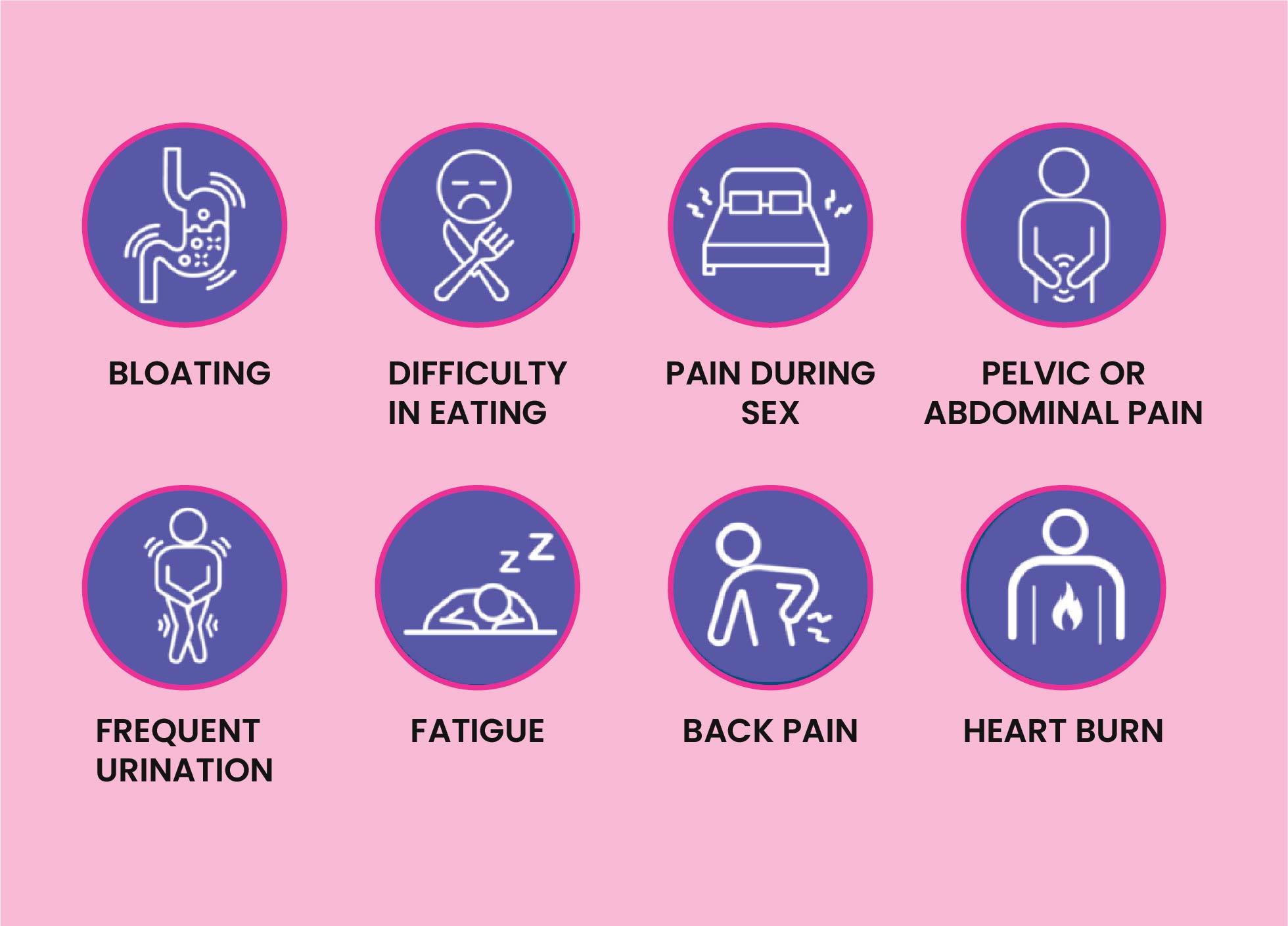 There are very rare symptoms in early-stage ovarian cancer. In the advanced stage, ovarian cancer may cause some signs and symptoms that may include: