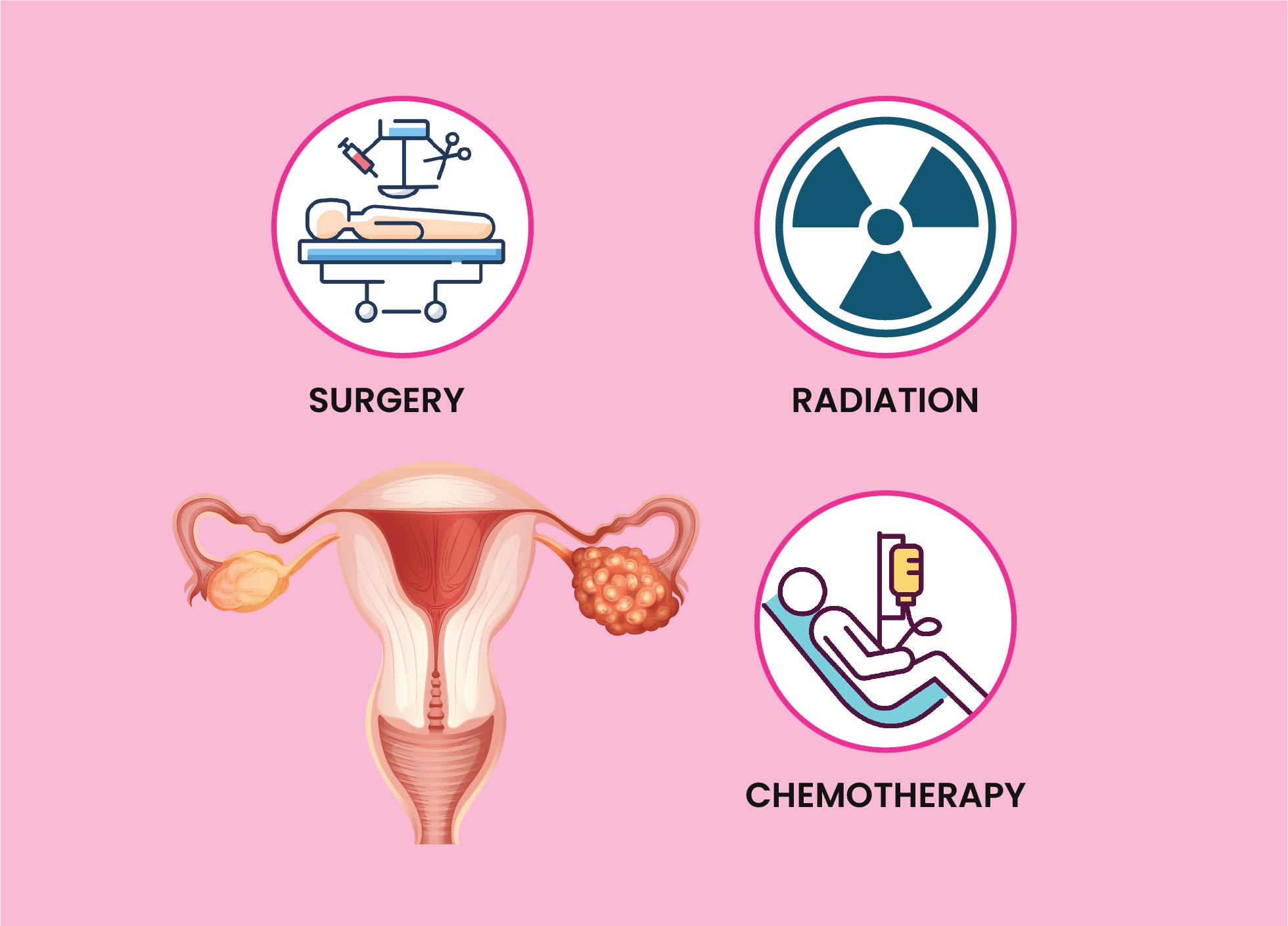 Your treatment depends on various factors. These include what type of ovarian cancer you have, how large it is and whether it has spread to other parts or not, what the cancer cells look like under the microscope and your general health. Treatment includes surgery, chemotherapy, radiotherapy and supportive care.